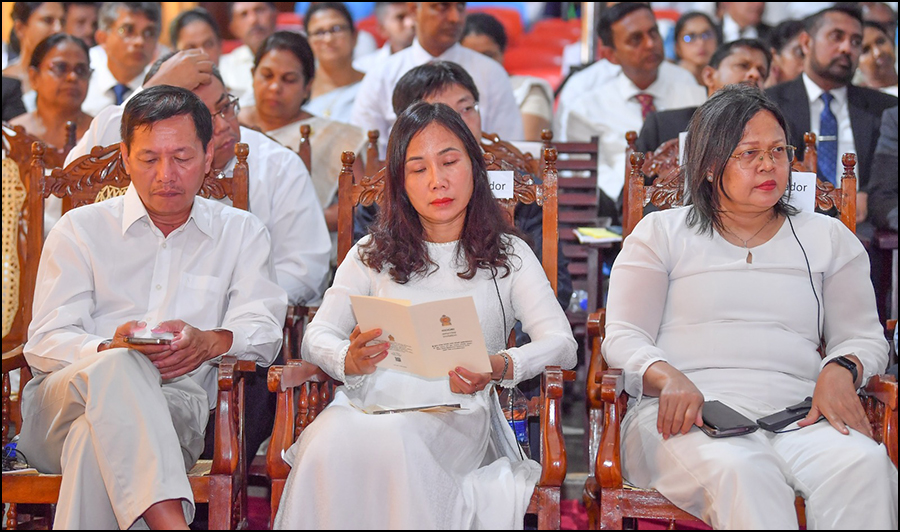 Also in attendance were multi-religious clergy, Speaker of Parliament Jagath Wickramaratne, Minister of Buddhasasana, Religious, and Cultural Affairs Dr. Hiniduma Sunil Senevi, other Ministers and MPs, Secretary to the President Dr. Nandika Sanath Kumanayake, senior government officials, foreign Ambassadors, High Commissioners, and a distinguished gathering of local and international guests.