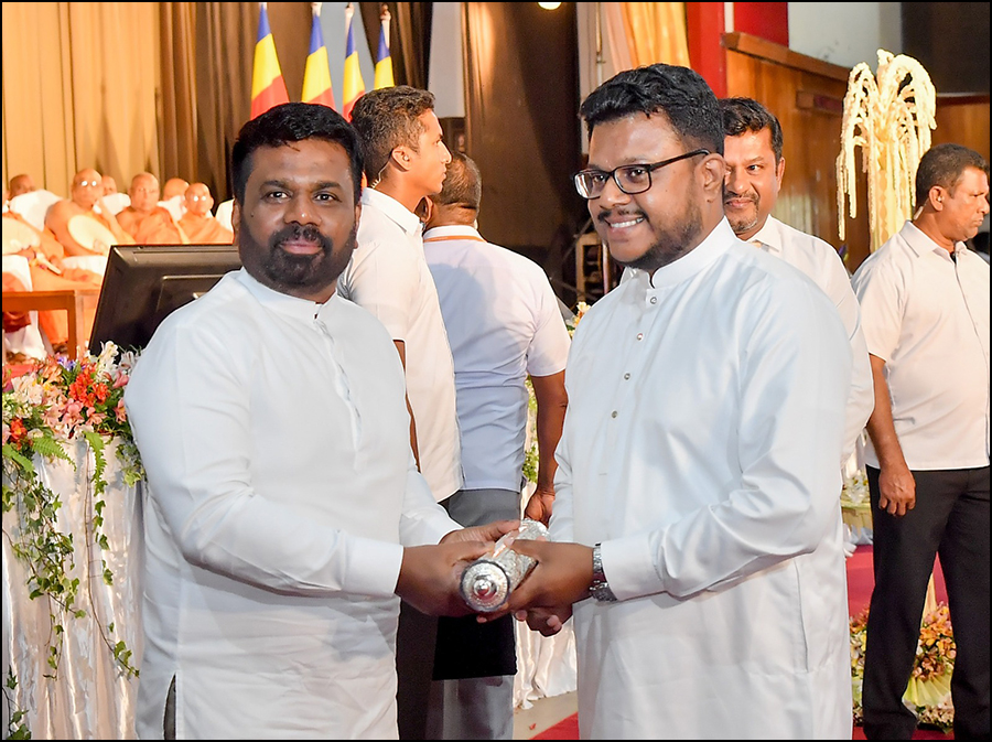 The event also included the presentation of ‘Sri Sannas Patra’ (official declarations) designating the historic Maliyadeva Purana Raja Maha Viharaya in Kotmale and the Sri Vishnu Devalaya in Kurunegala as sites of religious worship, both formally handed over by the President.