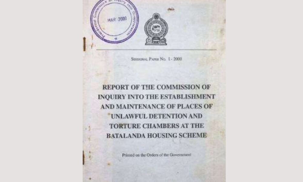 The “Report of the Commission of Inquiry into the Establishment and Maintenance of Places of Unlawful Detention and Torture Chambers at the Batalanda Housing Scheme” which...